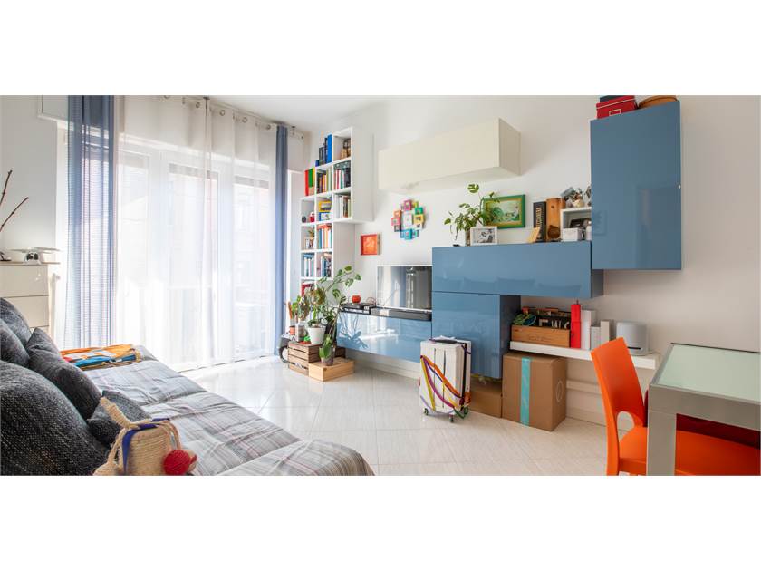 ingresso, ampio soggiorno, camera da letto, cucina abitabile, bagno finestrato e balcone.