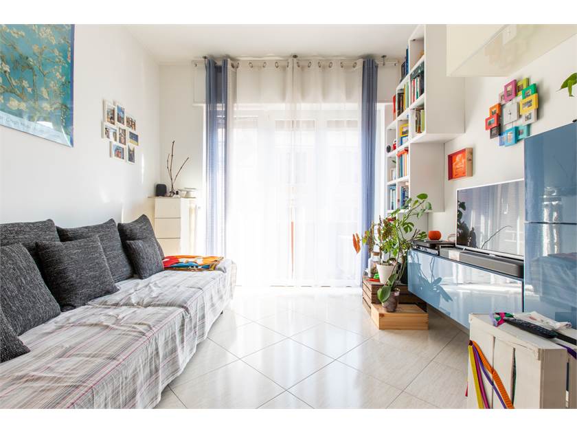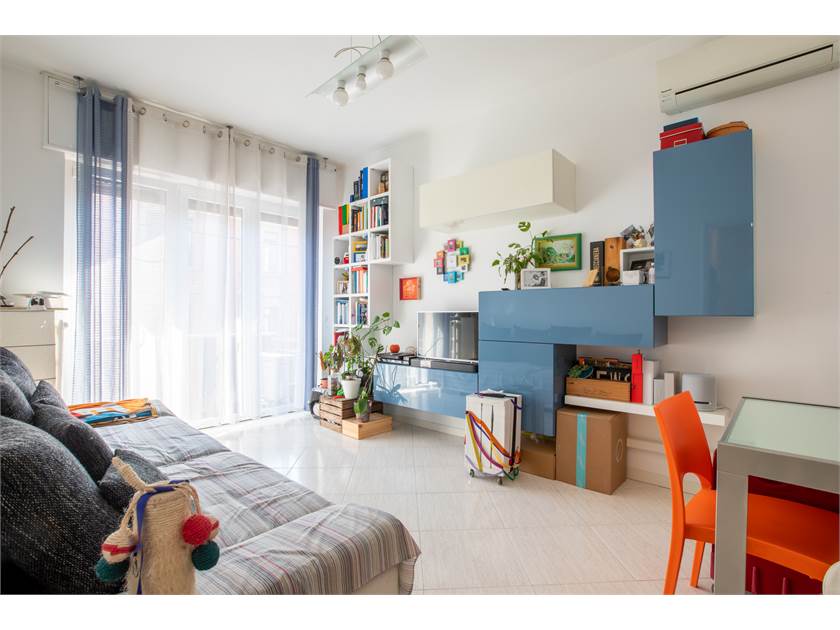 ingresso, ampio soggiorno, camera da letto, cucina abitabile, bagno finestrato e balcone.
