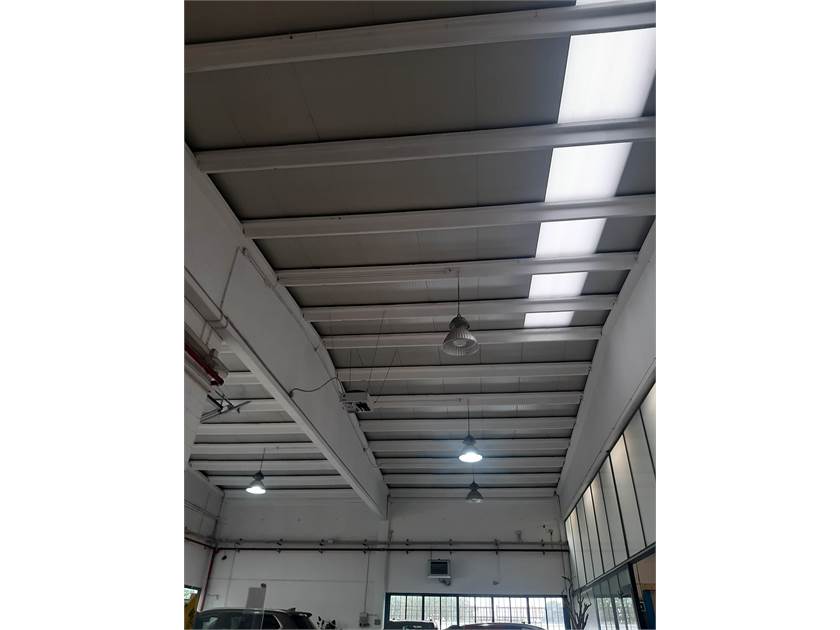 Tetto recentemente rifatto con pannelli sandwich da 12 cm per un eccellente isolamento.